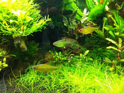 気温25℃ 水温25℃ 飼い込むことでまるで別種のように美しくなるテトラ…… 通称”化けトラ”の代名詞的存在であるタイトルの2種です。恥ずかしながら私、つい最近までこいつらが飼えば飼うほど美しくなることを知りませんでした。 特にレモンテトラは年単位での飼…